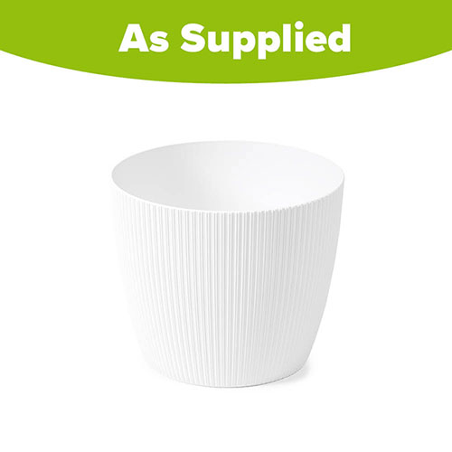Supplied as a single white pot cover. Diameter: 19cm, height: 15cm, holding 3L capacity.
