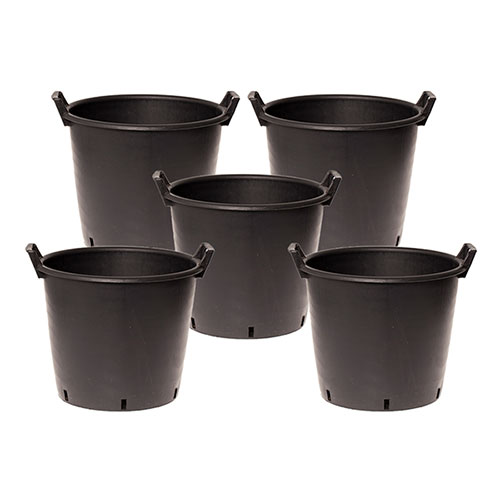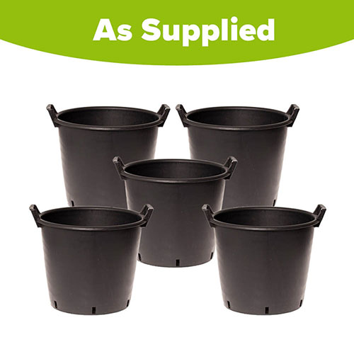 Supplied as a set of five 30L heavy duty pots, approximately 40cm diameter, 35cm tall. Please note, all measurements are approximate, and some styles may vary slightly.