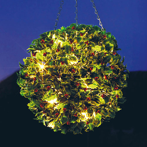 Create a magical welcome to your home this Christmas with the InLit Holly Ball, the ultimate fuss-free festive feature. This beautifully realistic topiary-style hanging ball is pre-decorated with glossy holly leaves and dotted with 20 warm white LEDs that twinkle like stars.