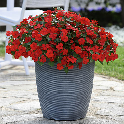 One of the most popular bedding plants, the 'Beacon' series of Busy Lizzie (impatiens walleriana) is guaranteed to excel in UK gardens, rain or shine, sun or shade! During intensive, large-scale trialling, 'Beacon' out-performed other varieties even when exposed to downy mildew, growing superbly and lasting until the first frosts.