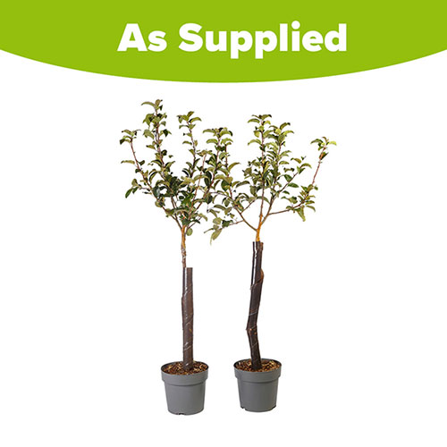 Supplied as a pair of established lollipop-like standard trees in 18cm pots, approximately 80-100cm tall, ready to plant and display.