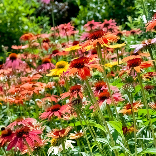 A border plant that really does it all! This Echinacea ‘Breeders’ Mix flowers for months, spanning June to November's frosts, putting on a drawing display of big, daisy-like blooms in unpredictable shapes and colours.