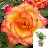 See excellent blooms with 'Sheila's Perfume'. This Hybrid Tea variety boasts flowers that are large, high centred and often carried singly. They are highly scented, predominantly golden yellow but each petal is edged with red that fades to pink. Stands up well to bad weather.