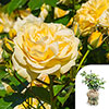 A cottage garden favourite, 'Sweet Memories' is a beautiful dwarf Floribunda rose with a compact and bushy growing habit that will become covered in clusters of small, fully double blooms in a delicate shade of soft lemon.